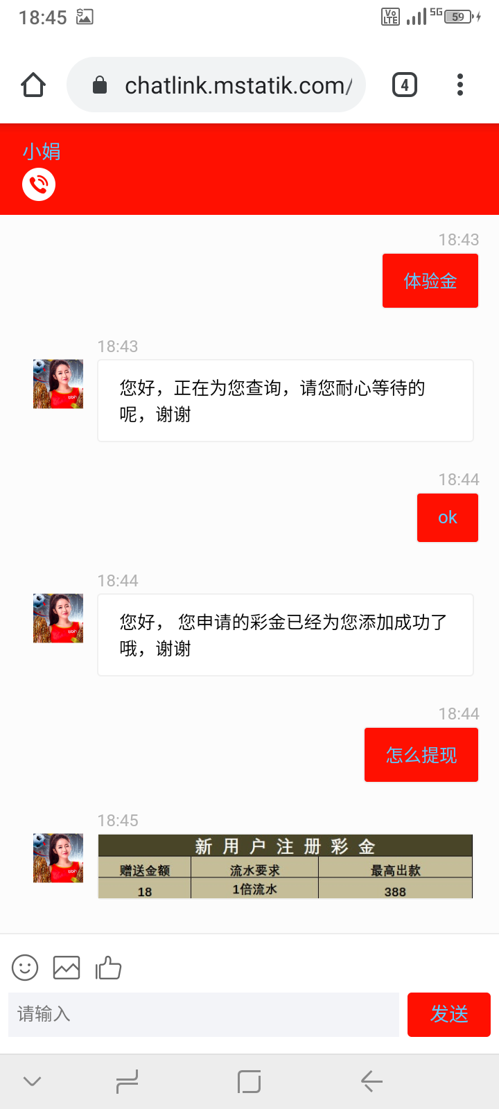 新用户注册绑卡找客服申请体验经18,最高提现388。第1次提现需要电话审核,客服说不能玩彩票棋牌,具体自测