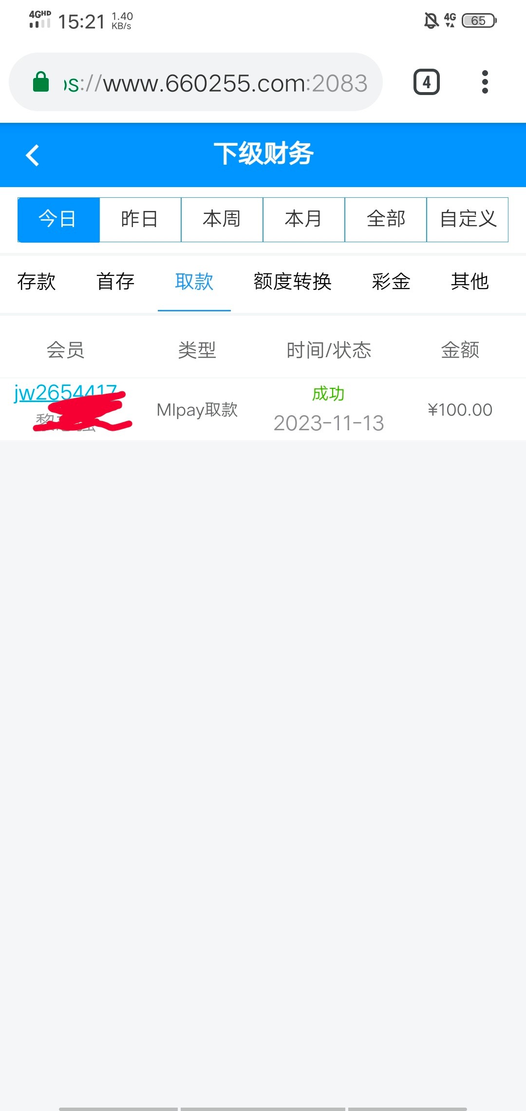 你提了多少,我这里下级提了全到账了