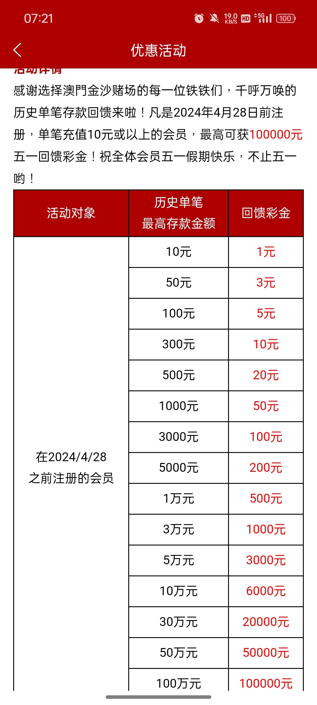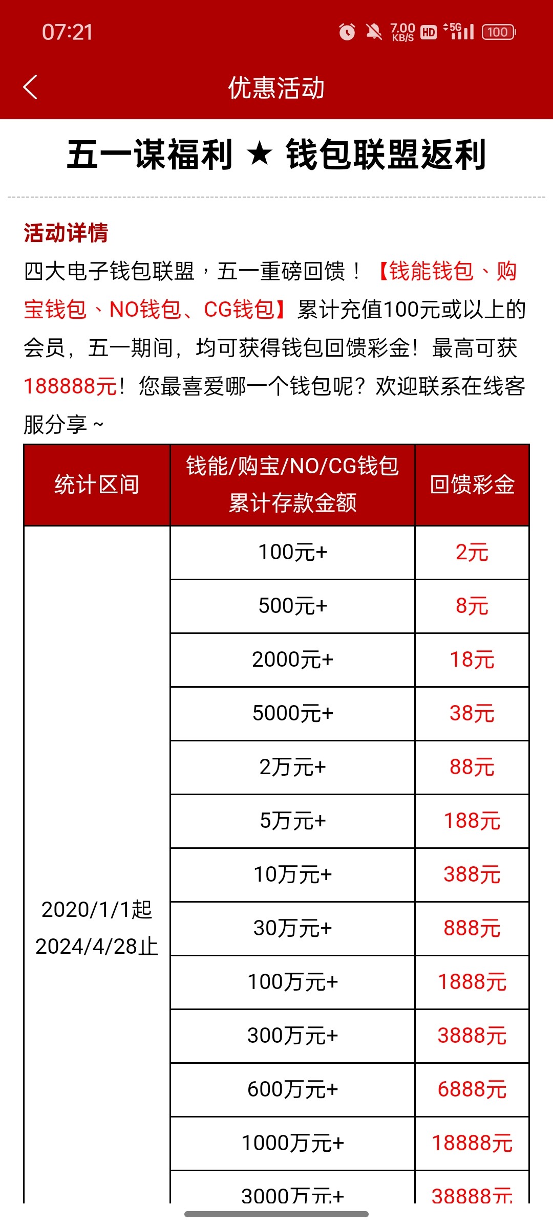金沙990的已经出了 这次回馈力度史无前例的大单笔存款回馈+历史所以钱包存款总额回馈 估计其他同平台也是一样的 这次51至少能撸1个