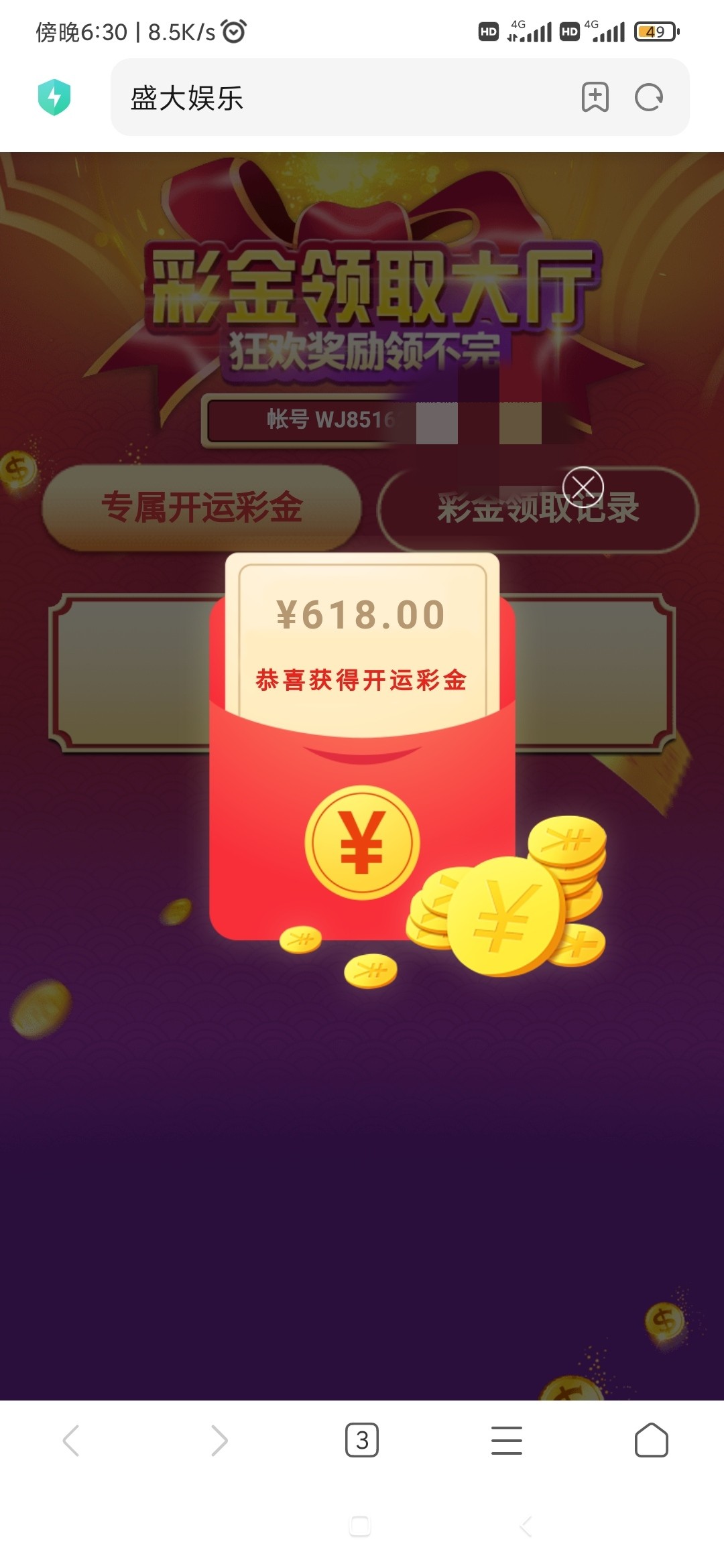 本站声明 1、本帖标题:盛大你们回馈多少,我回馈了618,我电子和真人等级vip8