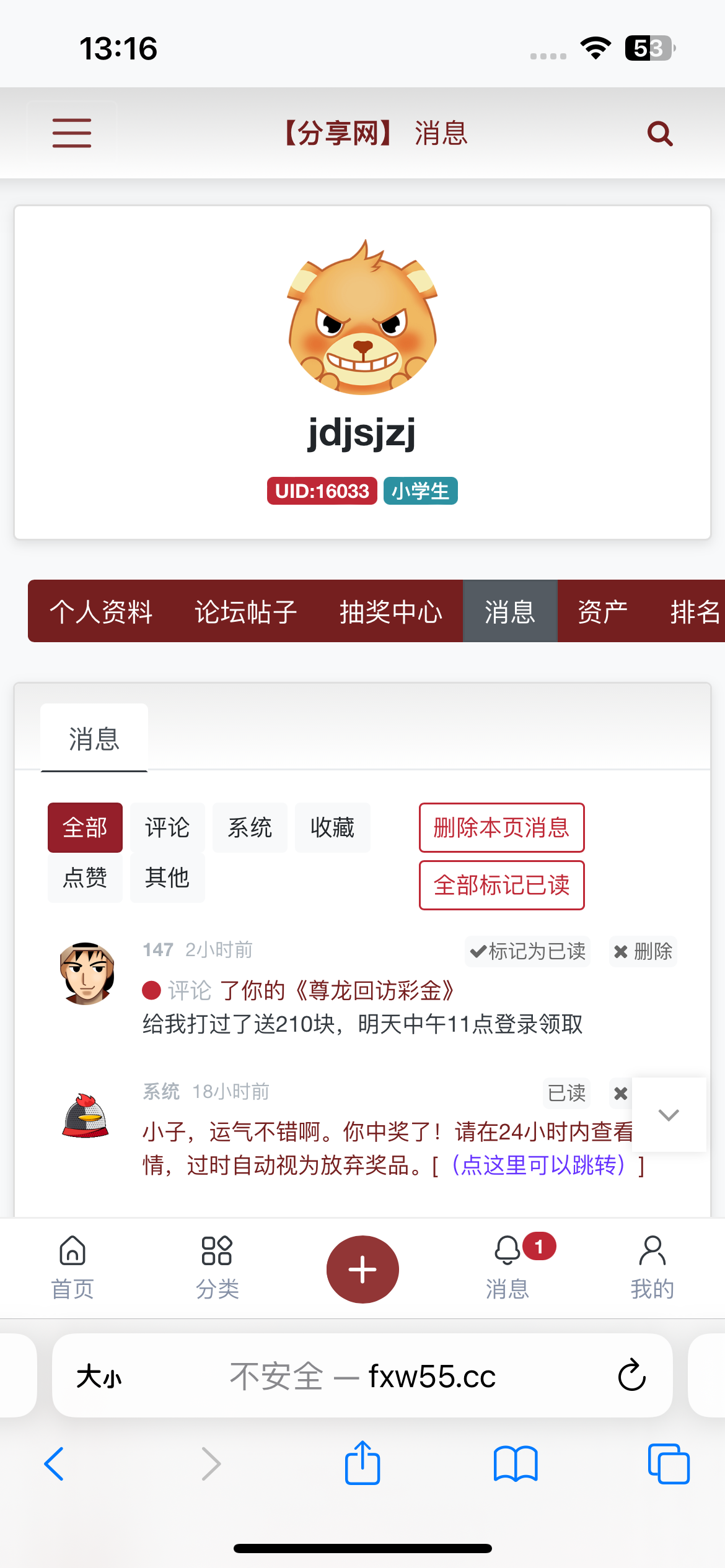 分享网回馈中奖公告