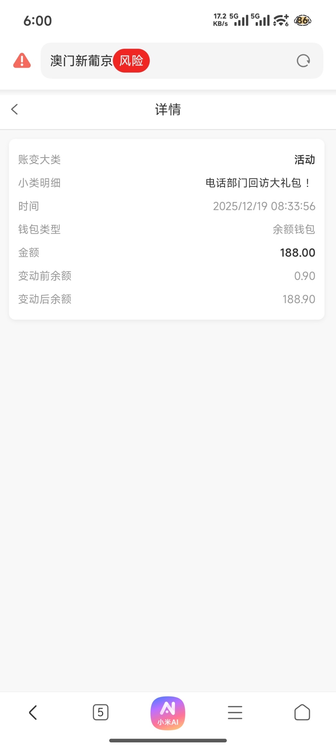 应该是之前注册过,充没充值忘记了,今天想找以小博大的平台,找到这个台了,登录进去一看有188,我看记录是电话彩金,系统派送的,有号的可以登录查看一下。提现200到账了