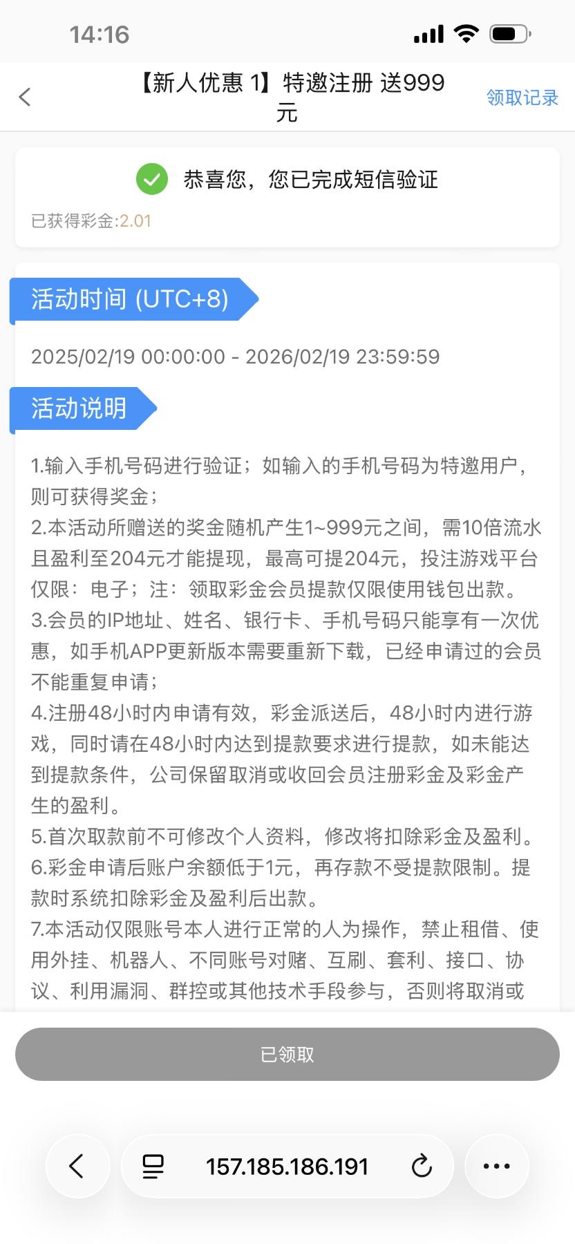 验证手机号碰瓷电话彩金