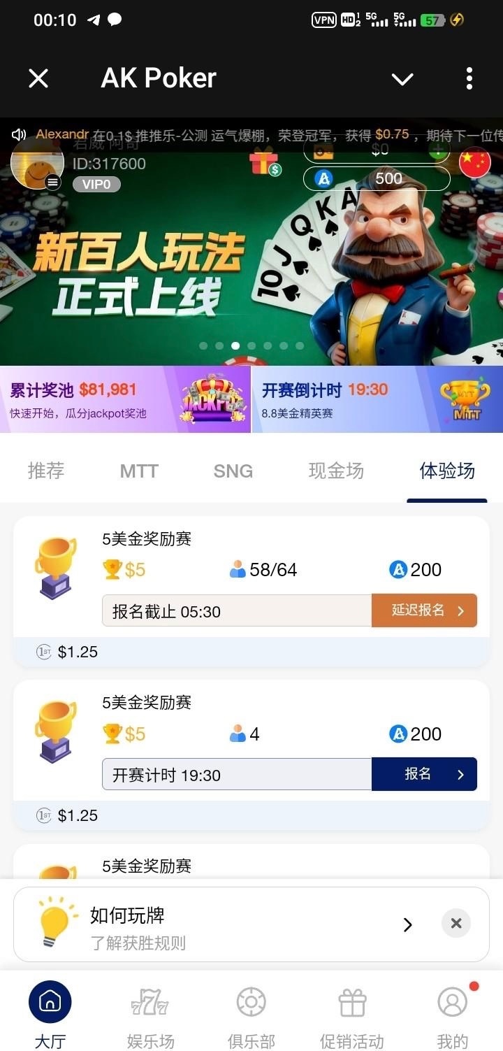【飞机AK德州扑克】500体验金赛