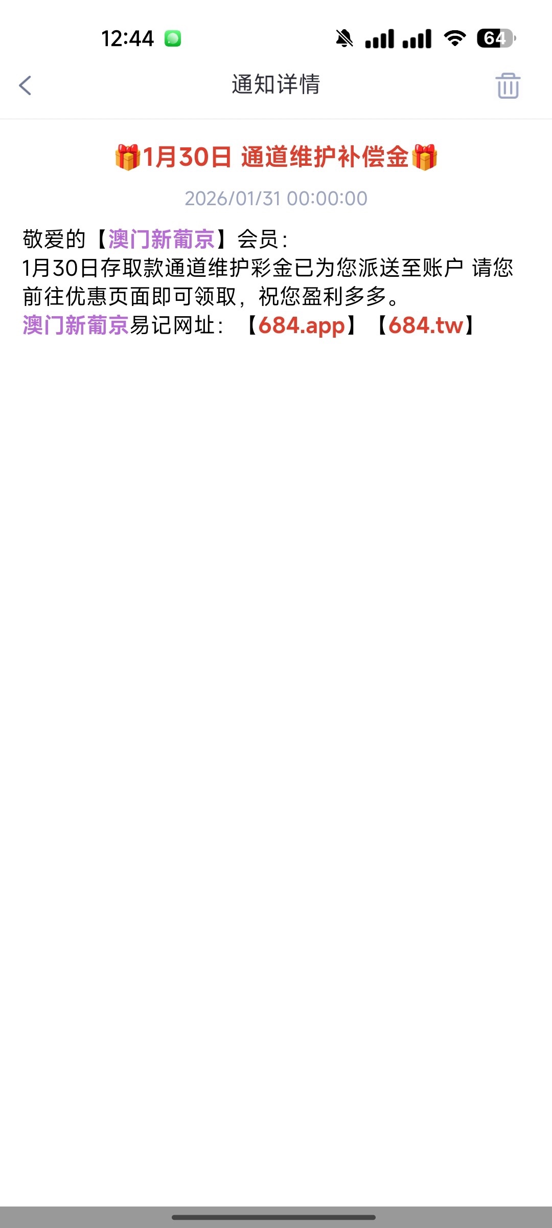 【葡京684-通道维护彩金】