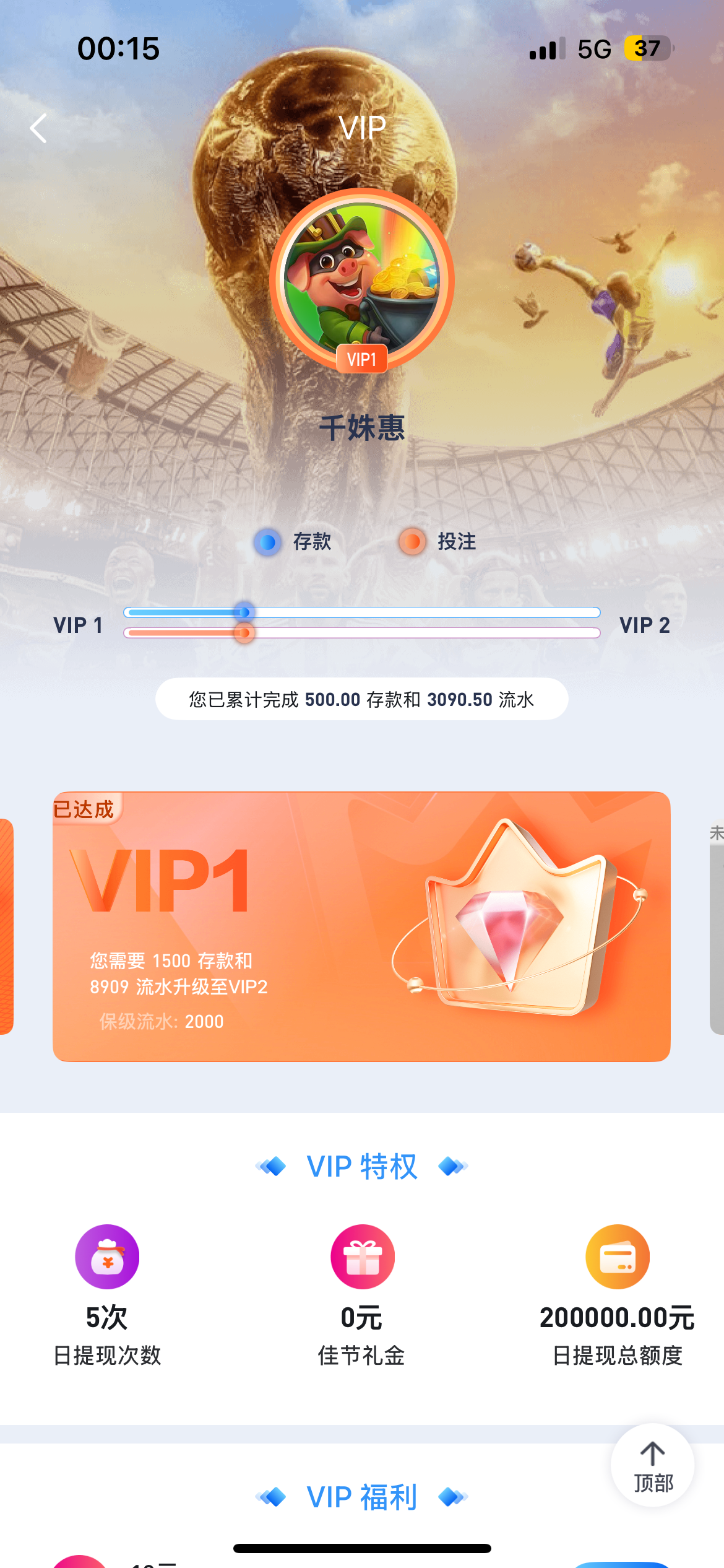 ①:充值金额大于1500+5000流水