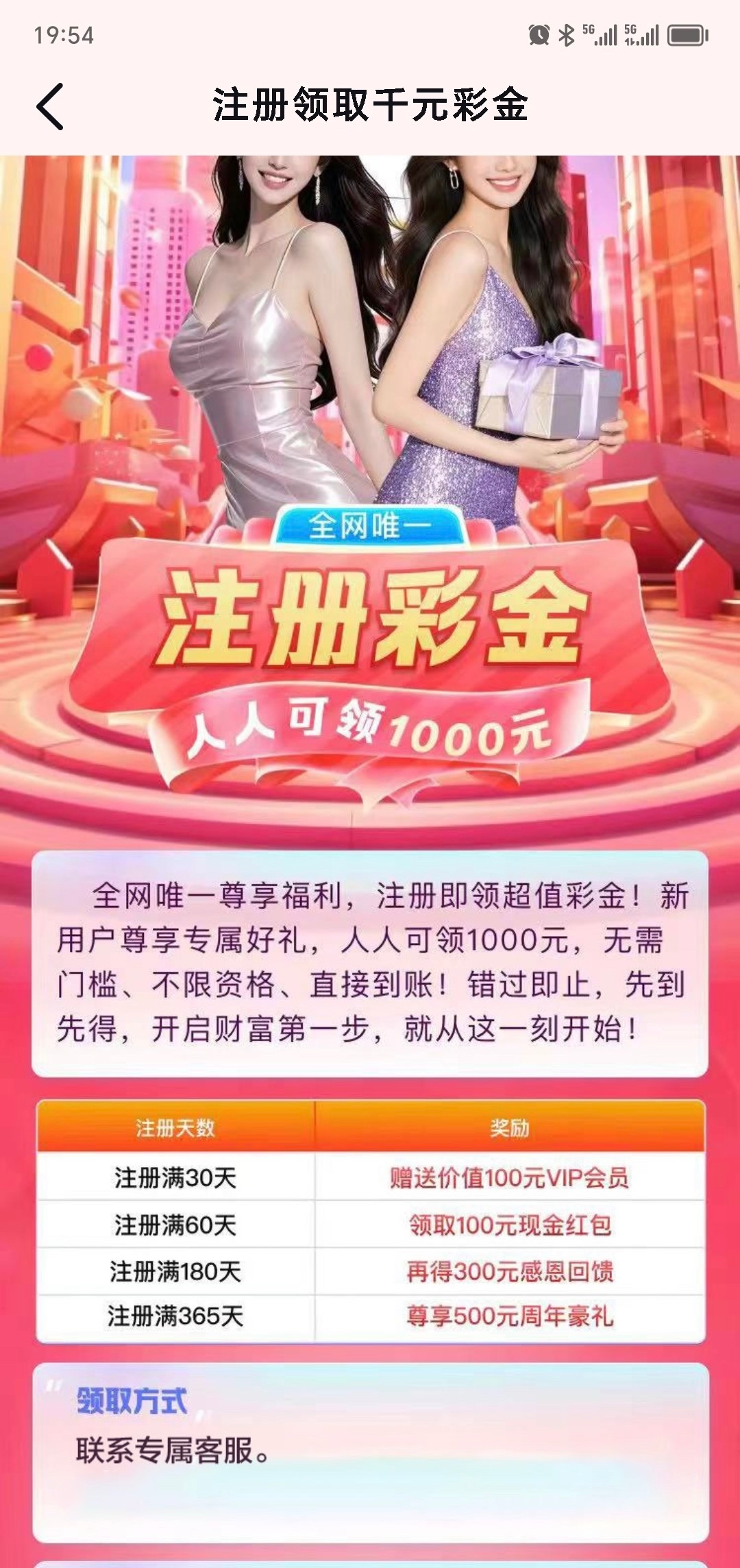 注册满180天福利。链接93187.cc