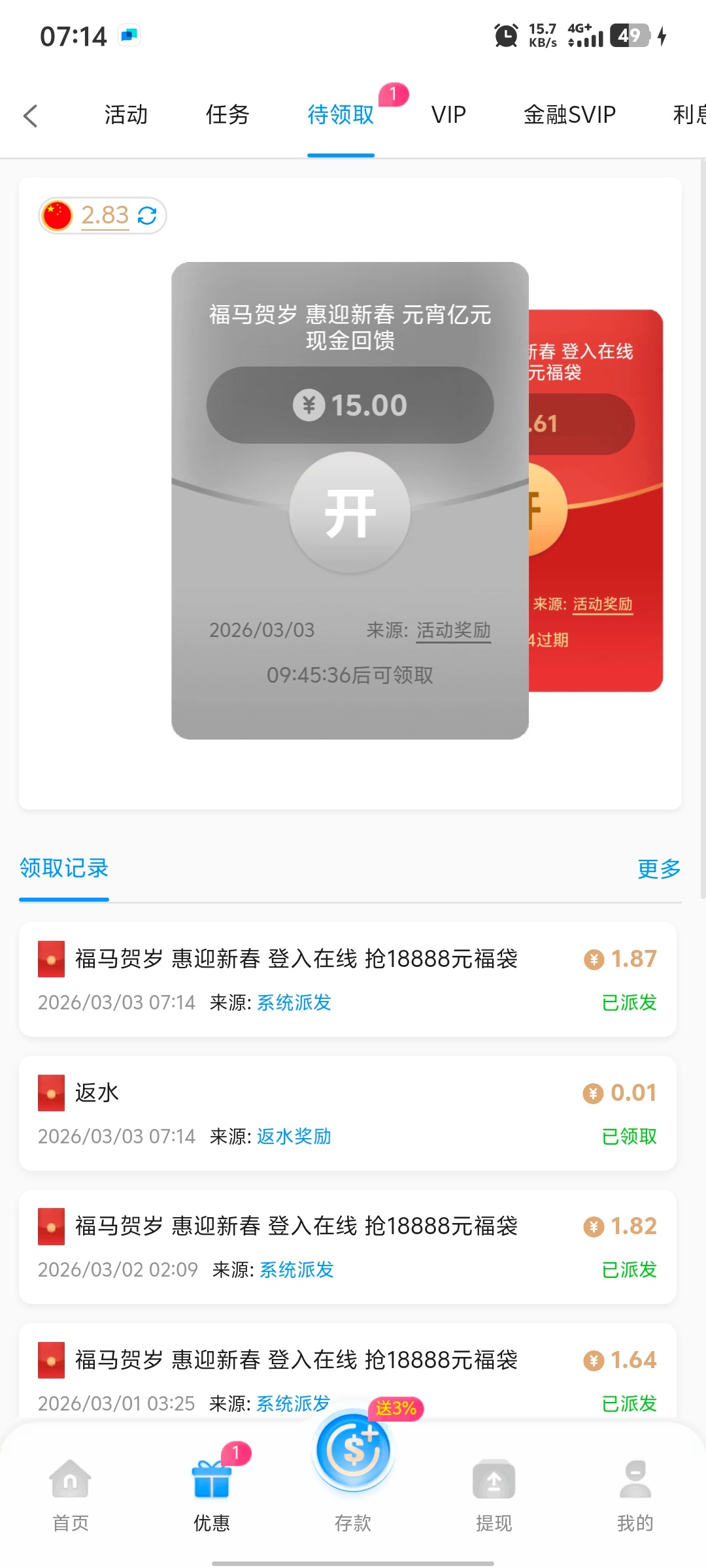 要过了今天十二点才能领,有号可以去看看