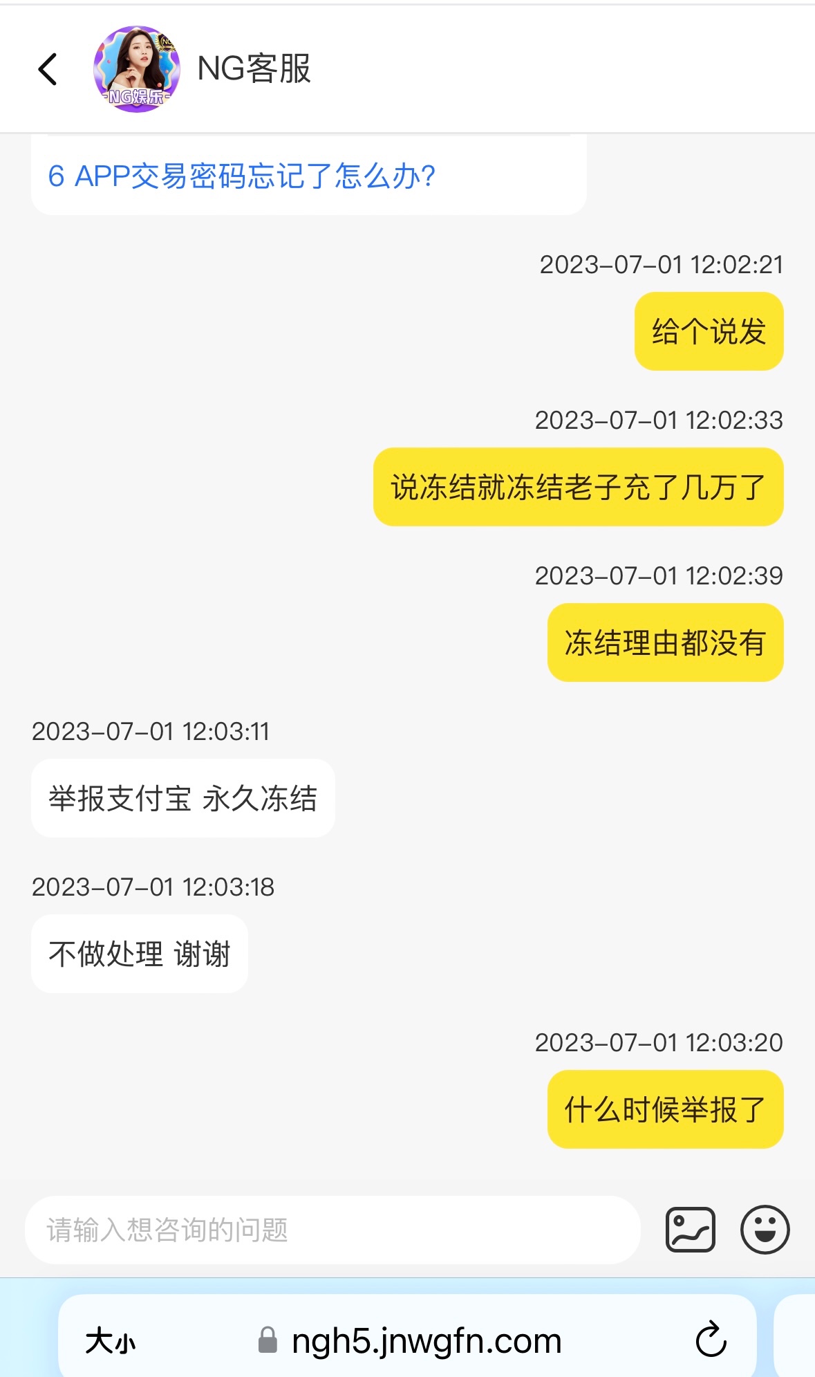 我给他举报封了七个支付宝两张银行卡。